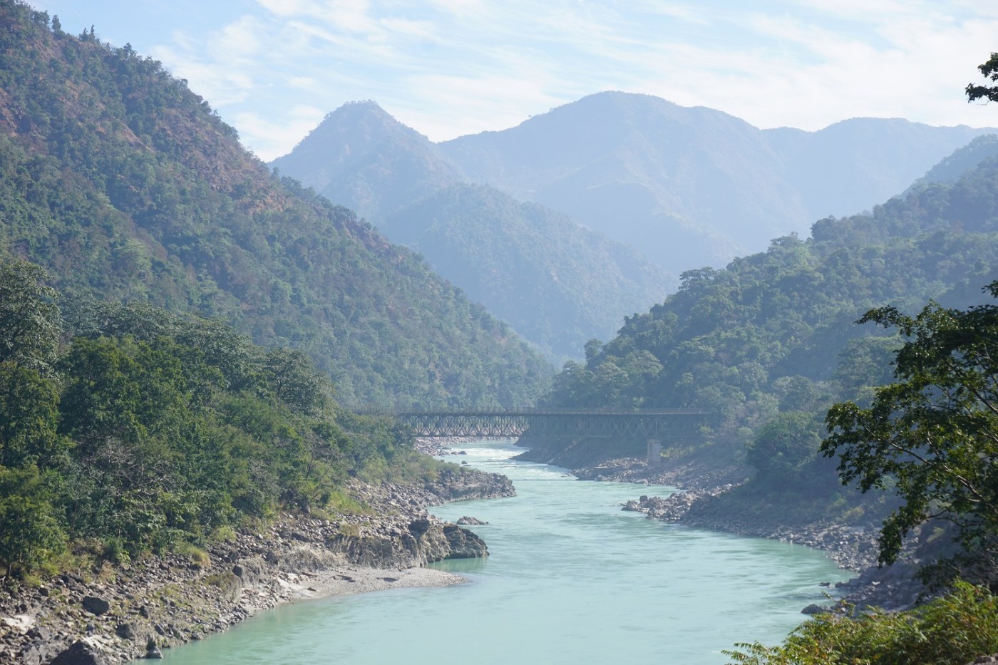 On commence par s’équiper de bonnet, chaussettes et châle en laine et nous voilà prêts à escalader l’Everest! Parce que ce lieu est un vrai appel à la ballade. On passe d’un quartier à l’autre en longeant le Gange ou en le traversant par ses passerelles piétonnes et dès qu’on sort du bourg, on se retrouve dans la jungle qui grimpe à flanc de montagne.